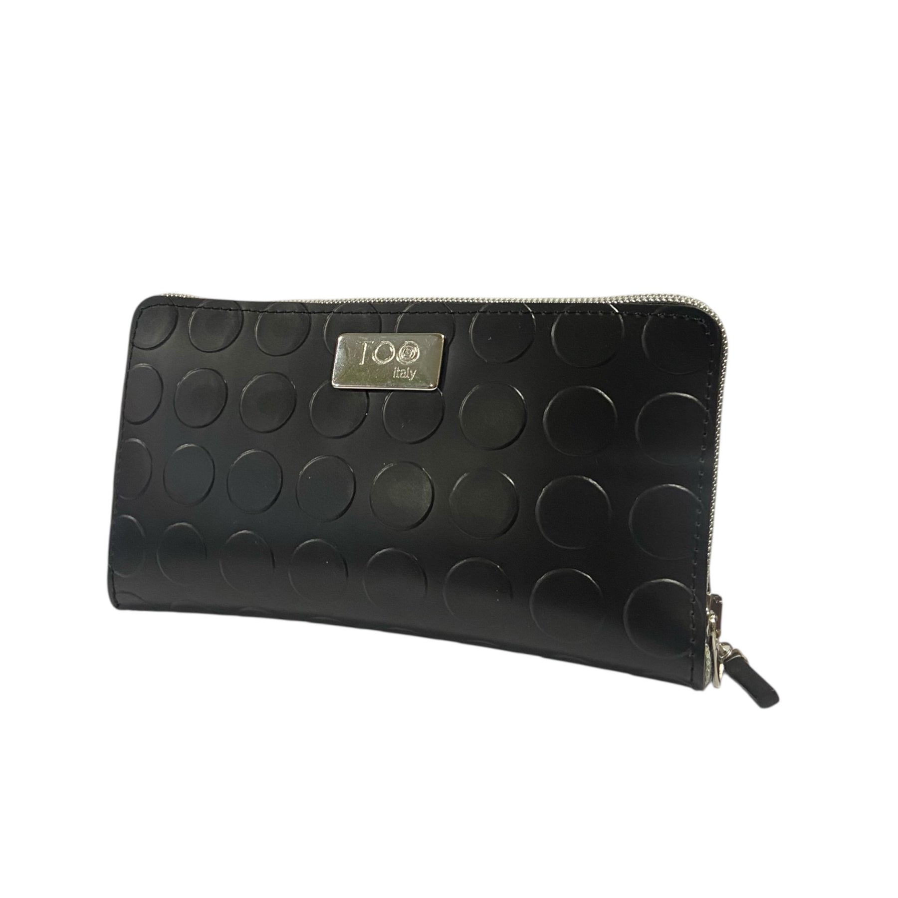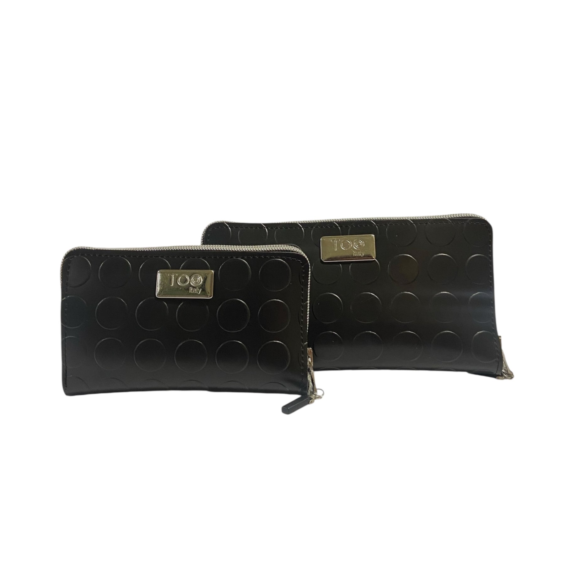 Il Portafoglio Maxi TOOitaly in PVC bullonato nero è un accessorio elegante e contemporaneo, caratterizzato dalla texture tridimensionale a rilievo che dona personalità e struttura al design.