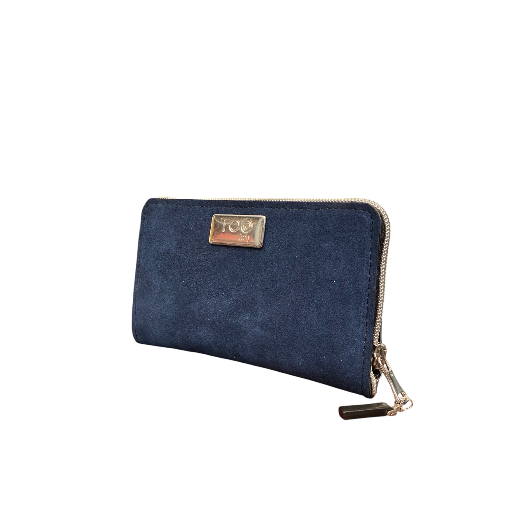 Portafoglio Maxi TOOitaly blu in alcantara con zip perimetrale. Elegante e funzionale.